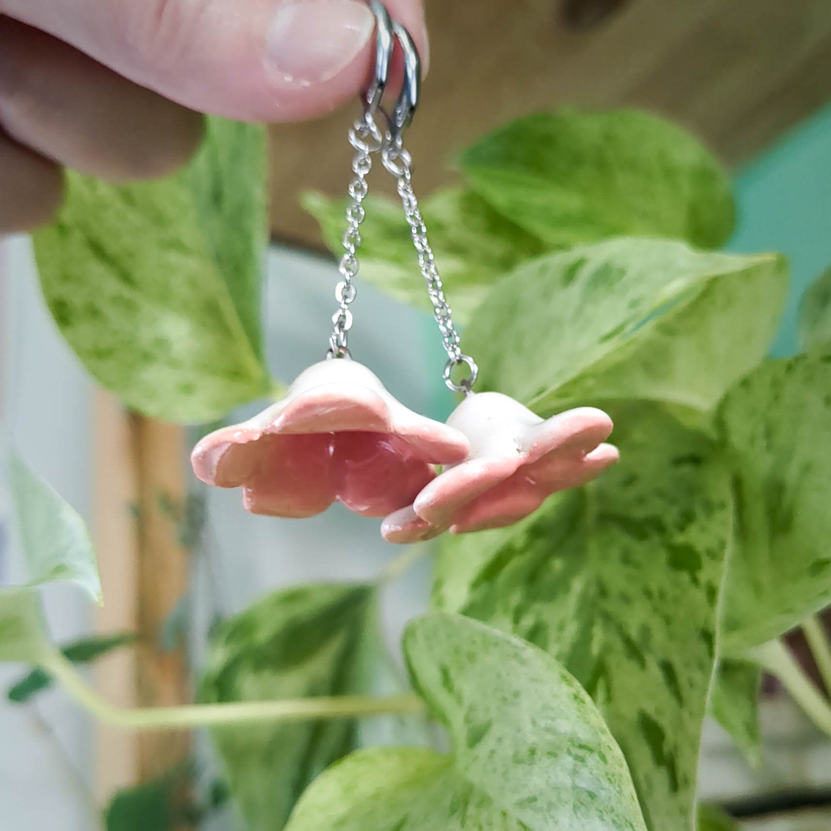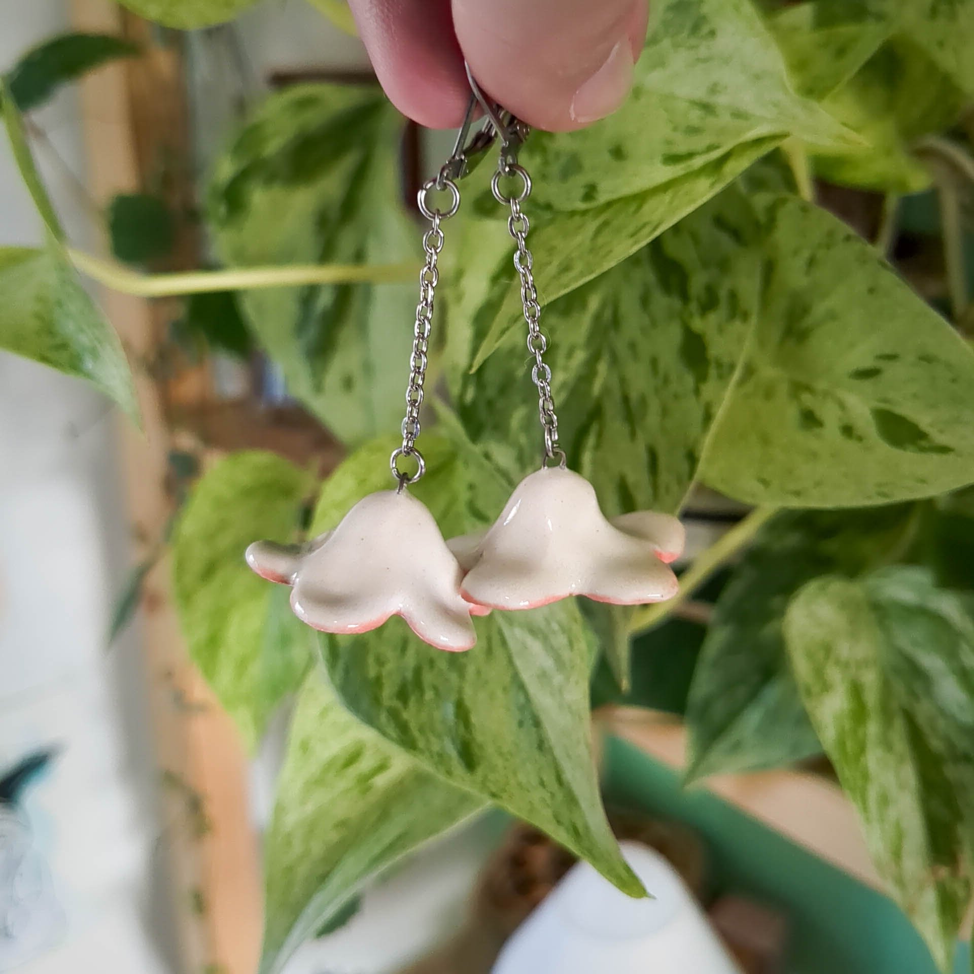 Une paire de boucles d'oreille en céramique, fabriquée et émaillée dans mon atelier !